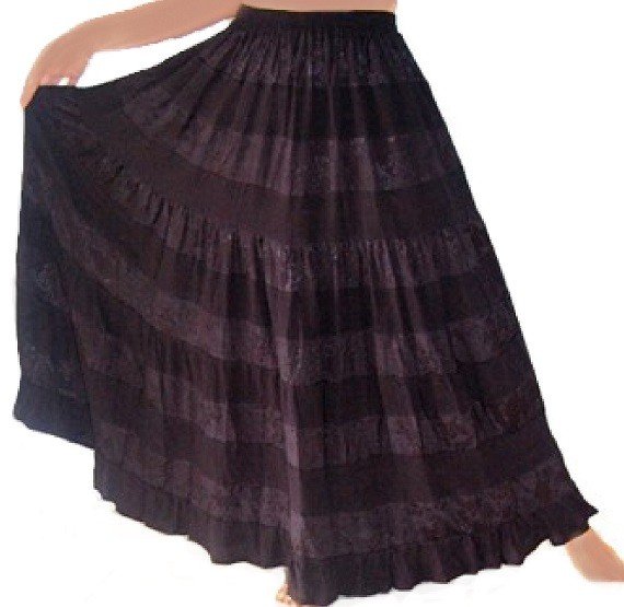 Evolved from the gypsy cult, gypsy skirts are usually long in length.These normally consist of wrinkled and ruffled up horizontal tiers of fabric attached to the hem. Best for